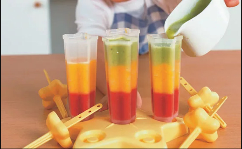 | Oluşan karışımı buz kalıplarına paylaştır, dondurma çubuklarını her bir küpe batır ve en az 2 saat dondur. |