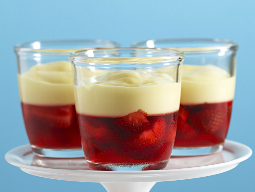 | Kremayı çilekli karışıma ekle ve kaselere pay et. |