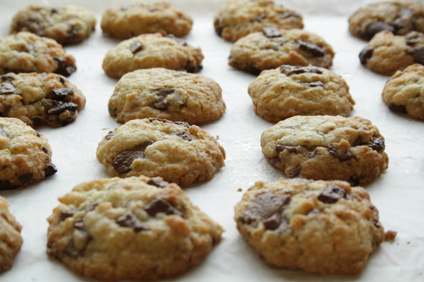 | Kurabiye hamurundan bir çorba kaşığı ile parçalar al ve yağlı kağıt üzerine koy. Üzerine bastırma. |