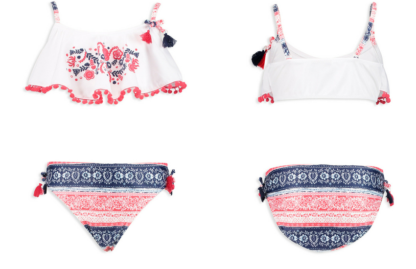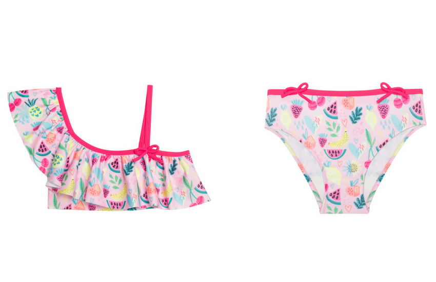 Bu sene farklı omuz modelleri olan bikiniler, çocuk mayosu dünyasında çok moda! Penti'den aldığımız bu bikini modeli de trendi yakalayanlardan birisi!