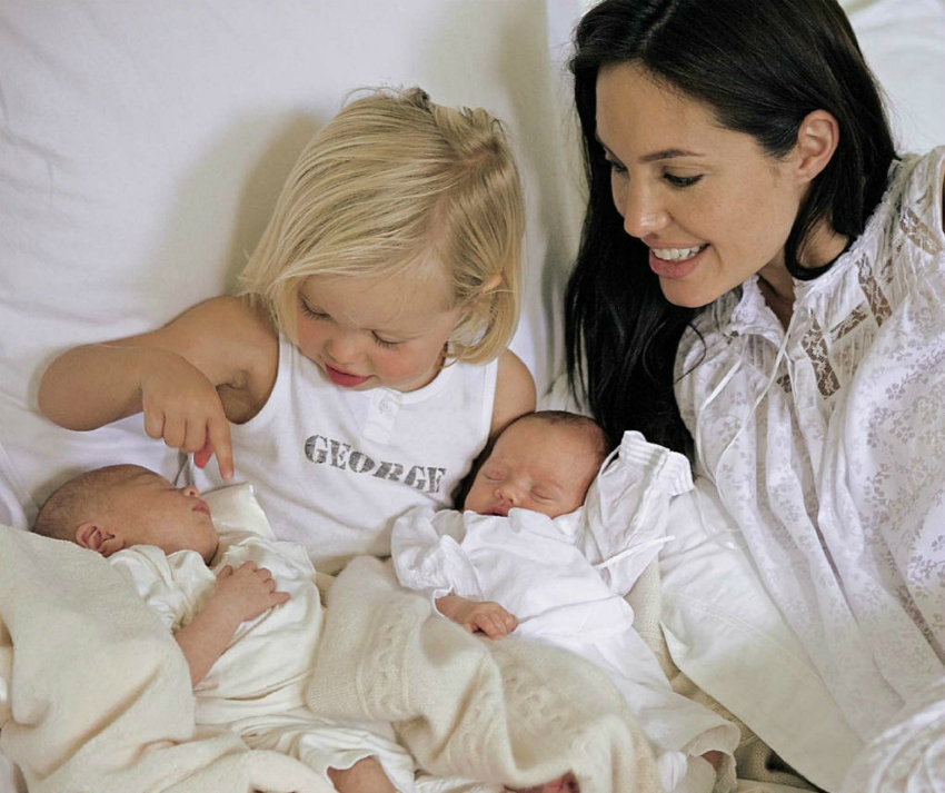 3'ü evlatlık, 3'ü ise biyolojik olmak üzere 6 çocuğu olan Angelina Jolie, ikizlerini 2008 yılında kucağına aldı. İkizlerin isimleri ise Knox Leon ile Vivienne Marcheline. Fotoğraftaki görüntüde Jolie'nin 3 biyolojik çocuğu bir arada. Ne sevimli değil mi?