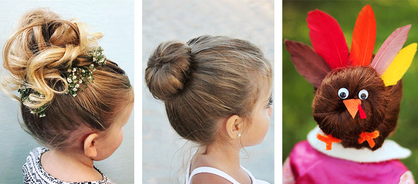 İster çiçeklerle süsle ister sade kullan, çocuğunun isteğine göre yapabileceğin envai çeşit çocuk topuz saç modeli var. İşin içine biraz yaratıcılık katayım dersen hayvanlar dünyası emrine amade. Kuş tüyleriyle süslenmiş bu modeli biz çok sevdik, dilersen uygulamayı dağınık topuz şeklinde yaparak ve daha farklı aksesuarlar kullanarak kuş yuvasına da benzetebilirsin.