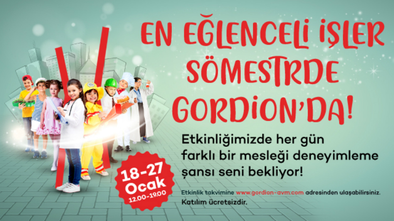 Ankara’nın en sevilen AVM’lerinden biri olan Gordion, yarı dönem tatilinde çocuğuna tüm meslekleri bir bir tanıtmak için kolları sıvıyor. Minik yavrunun her gün yeni bir mesleği deneyimleyerek öğrenme imkanı bulacağı bu etkinliğe katılım tamamen ücretsiz!