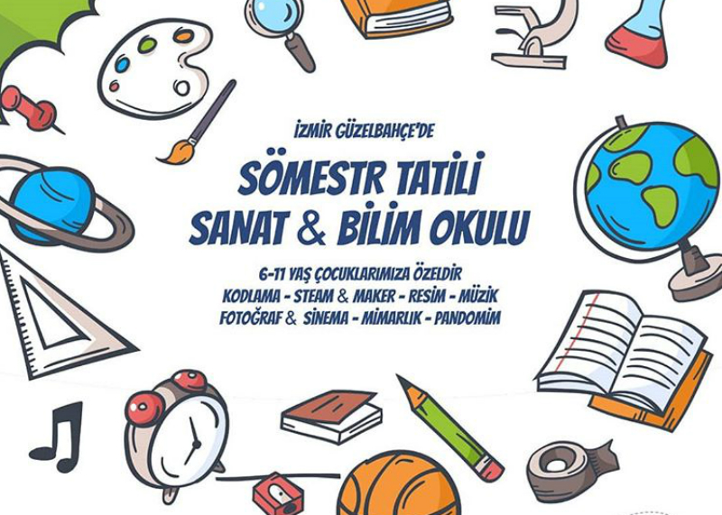 İzmirli çocukları bu yarıyıl tatilinde mükemmel bir program bekliyor. Robotik kodlama, steam, resim, müzik, fotoğraf, sinema, mimarlık, pandomim gibi birçok etkinliğin bir arada olacağı bu okulda çocuğun keyifli vakit geçirirken yeteneklerini keşfetme fırsatı da yakalayacak.