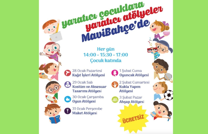 | Mavibahçe AVM Çocuk Katı | 6+ | 14:00-17:00 | Ücretsiz |