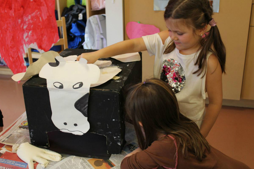 - Hikayeyi anlattıktan sonra, obur ineği besleyip süt sağma sırasının senin minnoşunda olduğunu söyle. Çeşitli otlarla ineği besleyin.