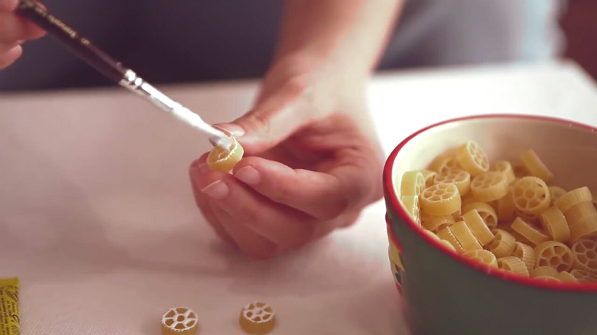 - Yine ipe dizeceği küçük makarnaları boyayarak bir kolye yapabilirsiniz.