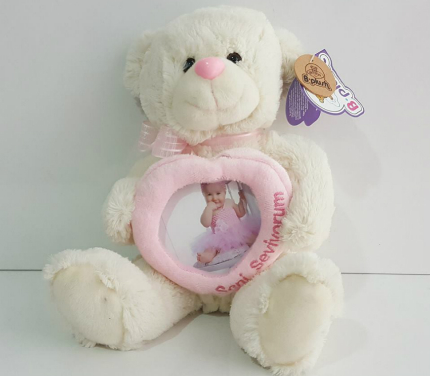 Bak, oda dekorasyonu için böyle fotoğraf çerçeveli oyuncak ayılar da var.