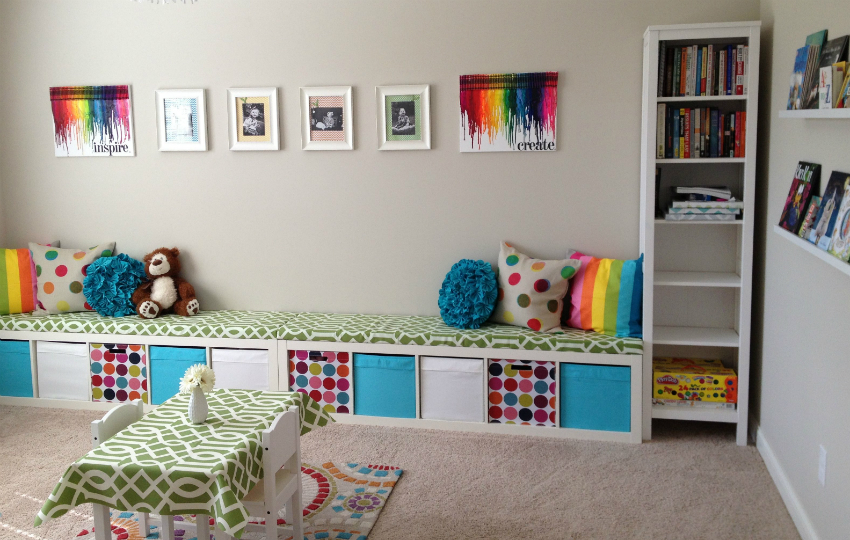 Oyuncak düzenleyici kutularla dağınıklığı toparlarken, üst kısmı da oturma alanı olarak kullanabilirsin. Çocuk odası dekorasyonuna da ufak bir katkımız olsun dedik. Nasıl fikir?