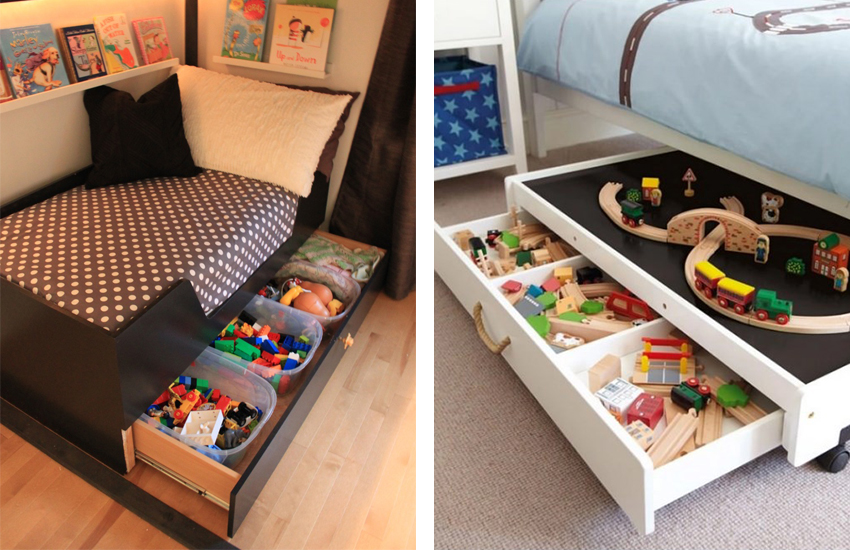 Çocuk odalarında genellikle yatakların altı pek kullanılmaz. Bu ölü alanı yaşayan bir oyuncak deposuna dönüştürmek hiç de fena olmaz. Özellikle alan problemi olan, küçük çocuk odaları için büyük kurtarıcı. Hem düşünsene senin minik kuş, geceleri yatağının altında bir sürü oyuncağı olduğunu bilmenin mutluluğuyla uyuyacak.