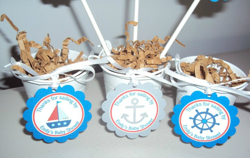 Diyelim ki erkek bebek için baby shower düzenliyorsun ve mavi beyaz renklerle gemici temalı bir dekor seçtin, o zaman gemici temalı bir hediyelik işini görecektir. Gemici bebek bibloları veya gemici düğümüyle bağlanmış lacivert lavanta keseleri alabilirsin.
