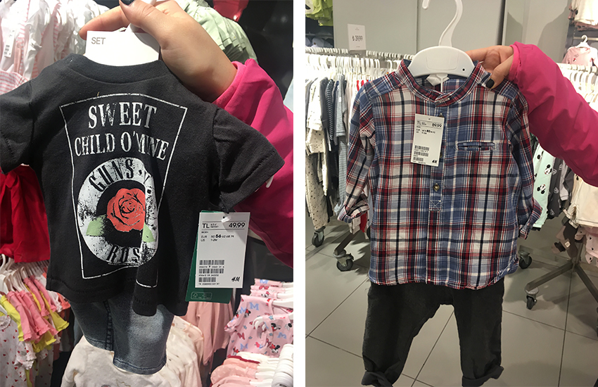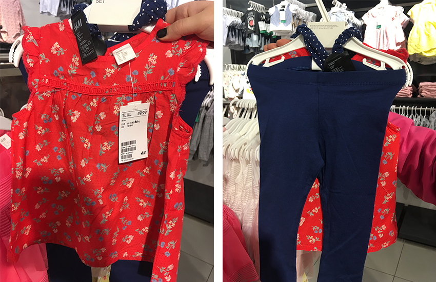 | H&M kız bebek takımı | Kısa kollu tişört ve pantolon tayttan oluşuyor. Tam bir rock’n roll kıyafeti. | 49,99 TL |