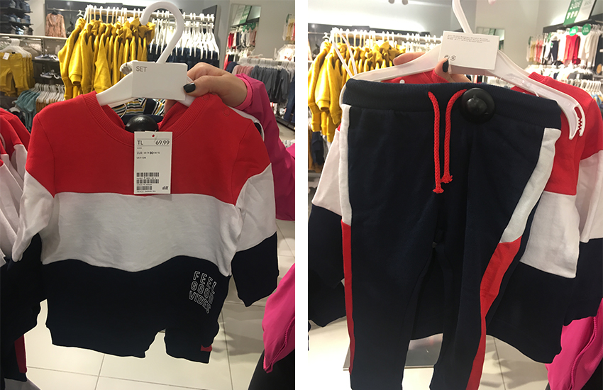 Bebek giyimin bir diğer favorisi H&M’e geldi sıra. H&M bebek takımlarında şöyle bir özellik var. Direkt alt ve üst olarak 2’li setler hazırlanmış, anneler de kombin derdinden kurtarılmış. Bebek takımlarının altlarında taytların yaygın olduğunu söyleyebiliriz.