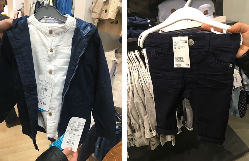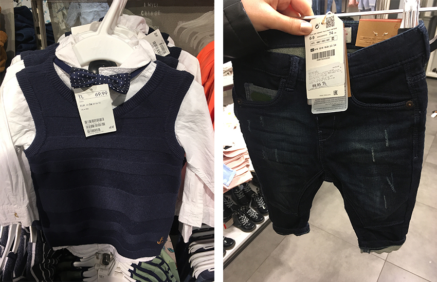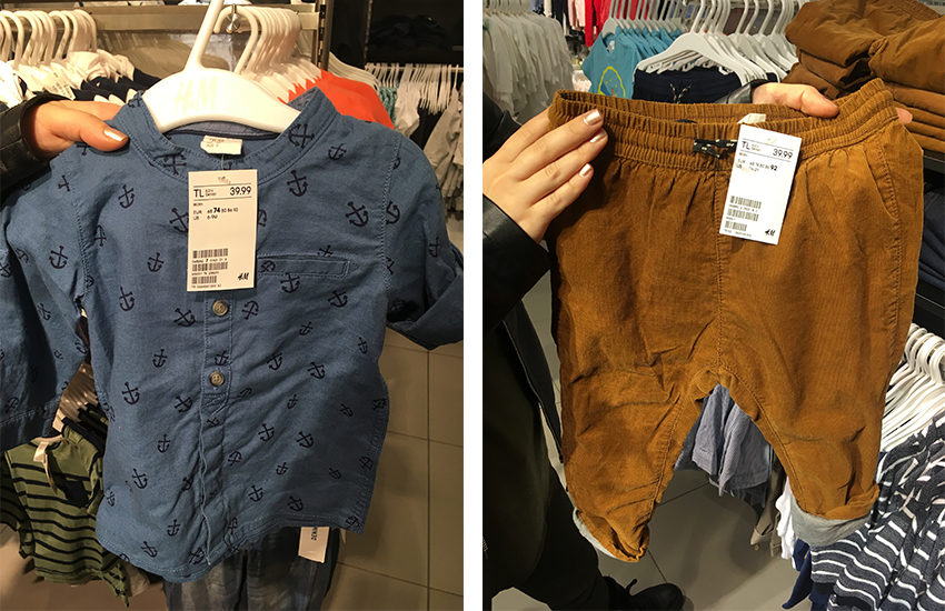 Ve mağazalardaki son kombinimizi de farklı mağazalardaki ürünlerden yaptık. Fermuarlı sweatshirt, halihazırda gömlekle kombinlenmişti. İstersen sen başka bir şeyler de deneyebilirsin ama biz bu kombini sevdiğimiz için farklı bir arayışa girmedik. Bu tatlışları LC Waikiki mağazalarından, yandaki kot pantolonu da H&M bebek giyim reyonundan satın alabilirsin.
