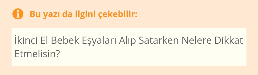 İkinci el bebek beşikleri, yatak, bebek dolabı, emzirme koltuğu gibi ağır ürünler için satıcının evine gitmen ya da sen satıyorsan müstakbel yeni sahibinin evine gelmesi gerekir. Her iki durumda da yanında en azından bir yakının olsun.