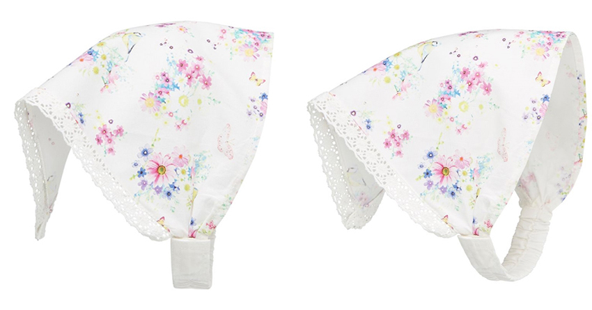 Sırada Mothercare’den çiçek desenli ve kenarları dantel detaylı şık bir bebek bandanası var. Cıvıl cıvıl yaz kombinlerine şıklık katmak için çok hoş değil mi?