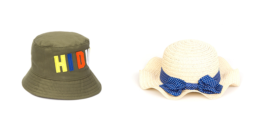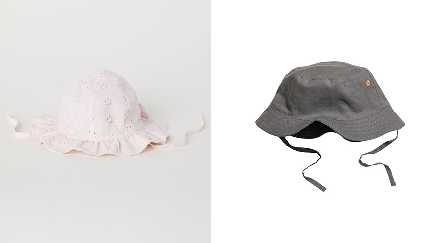 Bu gördüklerin bebek güneş şapkaları. Soldaki pembe şapka, kızına giydirdiğin elbiselerle çok tatlı durabilir. Sağdaki balıkçı şapkayla da oğlunun şortlu kombinlerini tamamlayabilirsin.