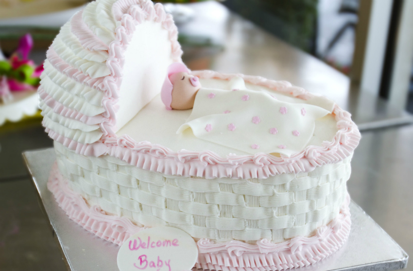 4. Bebek arabası ve beşik temalı baby shower pastaları