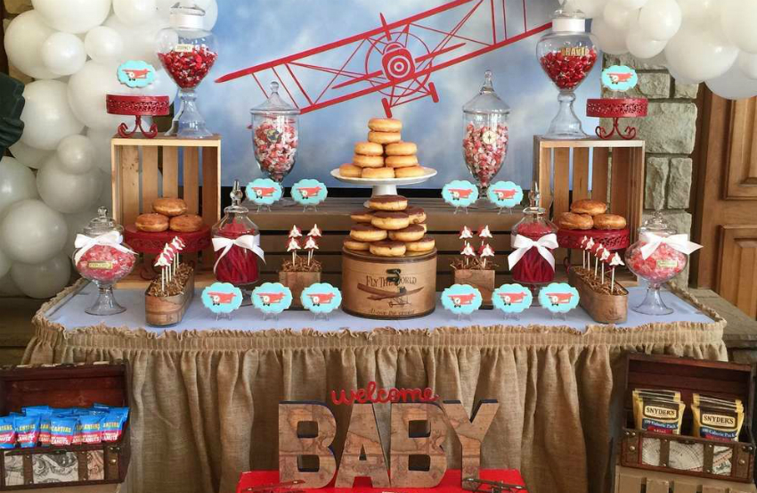 Eğer sen veya eşin uçuş görevlisiyseniz, o zaman uçak temalı baby shower partisi tam sana göre. Hayatı havaalanlarında ve uçaklarda geçen çiftlerin bebek partisi için daha iyi bir konsept olabilir mi? Bu konsepti yaratmak için bolca kağıt uçak ve buluta ihtiyacın olacak. Birkaç tane de büyük maket uçak alırsan dekorun çok daha şık olacaktır. Partine biraz da espiri katmak istersen misafirlerine vereceğin hediyeliklerin durduğu yere bir karton asıp "Bagaj Teslim Noktası’’ yazabilirsin. Tabii hediyeler bavul görünümündeki karton kutuların içinde olursa çok daha şık olur.