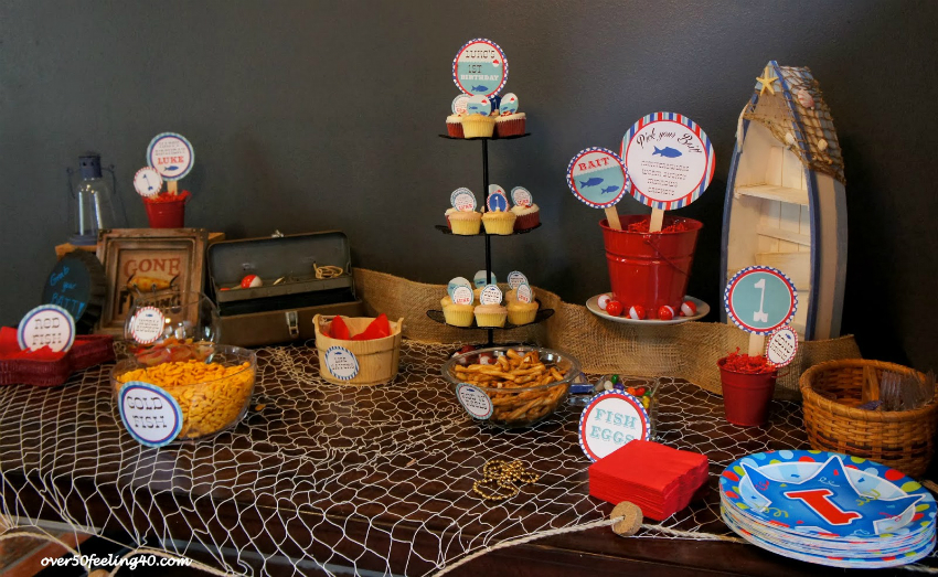 Balık ve balıkçı 1 yaş doğum günü konsepti