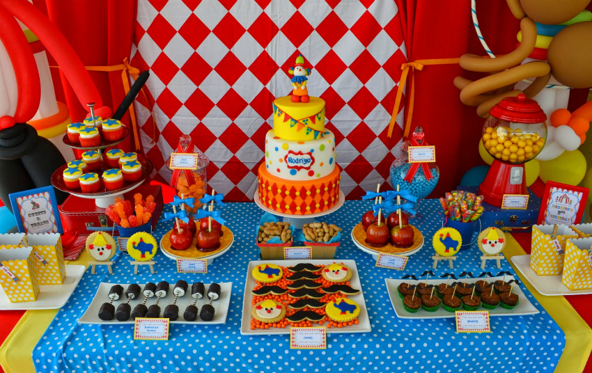 Sirk ve palyaço 1 yaş doğum günü konsepti