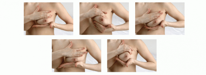 - İki elini de göğsünün en dibinden meme ucuna doğru hafif baskılar yaparak ilerlet.