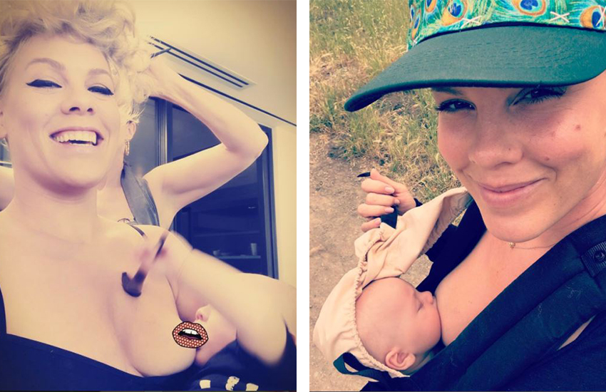 Yukarıda görmüş olduğun fotoğraflar iki çocuk annesi olan Pink’in yakın zamanlarda minik oğlu Jameson’u emzirirken sosyal medyada paylaştığı kareler.