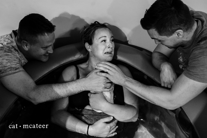 Bebeğini kolları arasında sarmalayan bu anne sence de “Başardım değil mi?” der gibi bakmıyor mu? Mutluluk gözyaşları dedikleri böyle bir şey işte. Doğum fotoğraflarının verdiği her his bir başka. Bu fotoğraf da Cat Mcateer tarafından çekilmiş.