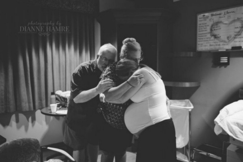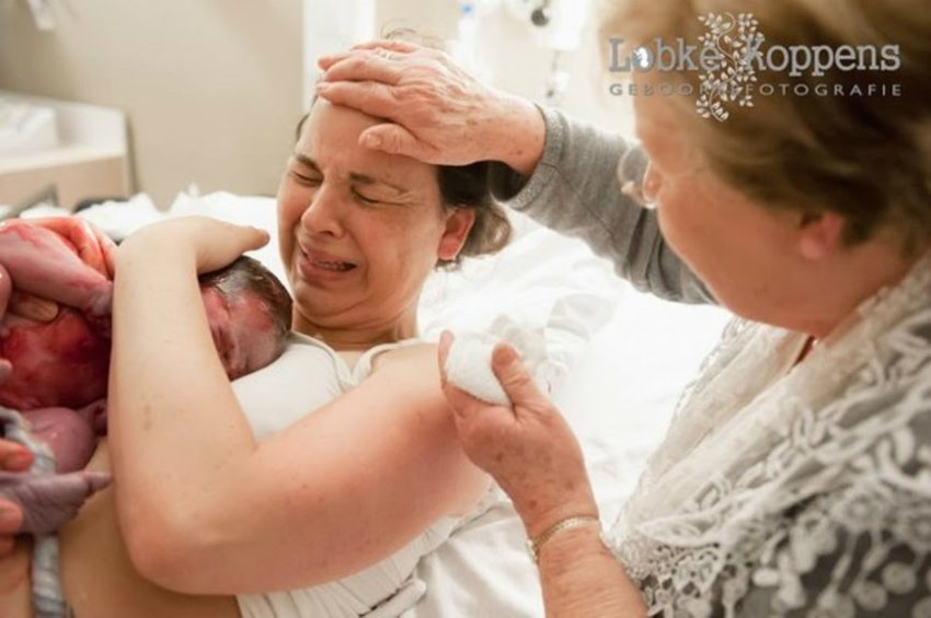 "Bu anne, evde doğum yapan kızına son anda yetişebildi ve bebek doğmadan evde olabildi. Bu fotoğrafı özel yapan şey ise annenin 30 yıl önce kızını bu evde doğurmuş olmasıydı."