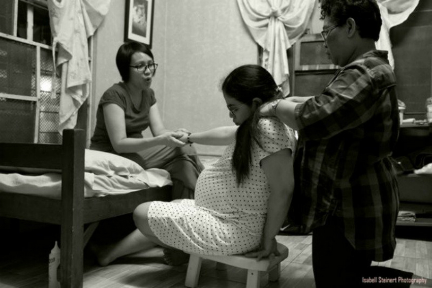 "Bu kadın bir doula'ya sahipti ve doula'sı onu rahatlatmak için çaba gösteriyordu. Ama annesi onu asla yalnız bırakmadı ve o da kızının rahatlamasına katkı sağladı, doğum sancılarını azaltmak için sırtına masaj yaptı."