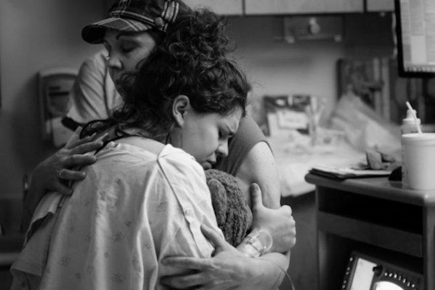 "Sancıların yoğunluğu sırasında, destekleyici bir annenin var olmasının rahatlatıcılığı fotoğrafa yansımış."
