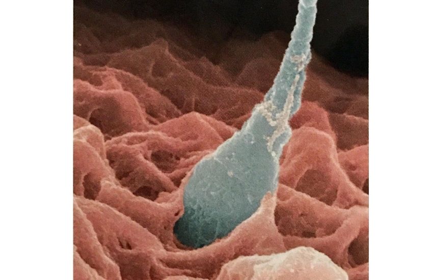 Yukarıdaki görselde yumurta spermlerle çevrili olarak gösterilmiştir. Yumurtayı yalnızca bir sperm döllese de savunma katmanlarını kırmak ve döllenmenin gerçekleşmesini sağlamak için birkaç yüz spermin gerekli olduğu düşünülmektedir.