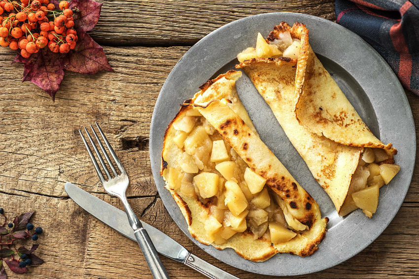 | Elma ve tarçın karışımını kreplere pay et ve rulo haline getirerek servis yap. |