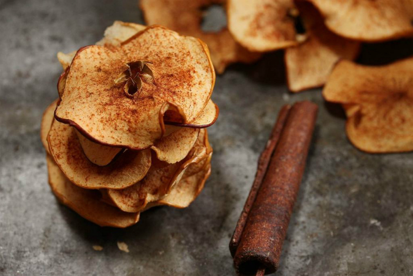 | Bir fırın tepsisine yağlı kağıt ser ve elma dilimlerini yerleştir. |