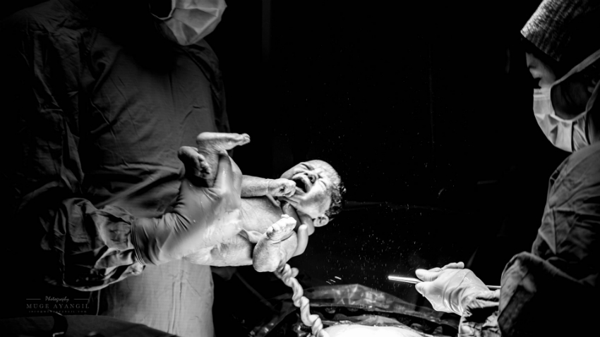 Müge Ayangil: Ameliyathanede hiçbir şekilde rahatsız edecek, düzeni bozacak ya da dikkati dağıtacak bir hareket yapılmaması gerekiyor. Annenin doğum için odadan çıkartıldığı andan itibaren flaş kullanımını bırakıyorum. Doğum anı ise benim için olmazsa olmaz andır. Açımı kendime göre ayarlayıp bebeğin ilk anlarını yakalıyorum. Tabii bu durumda annenin ameliyatlı kısmı da fotoğrafta olabiliyor. Benimle çalışan ve çalışacak tüm anneler bunu bilerek bana geliyorlar.