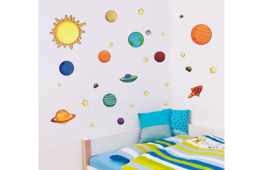 Duvar sticker’ları çok çeşitli. Çocuğunun odasının her bölümünde bunları kullanabilirsin. Bizim seçtiğimiz ürün uzay motifleri taşıyor. Bu erkek çocuk odası aksesuarlarını KT Decor’da bulabilirsin.